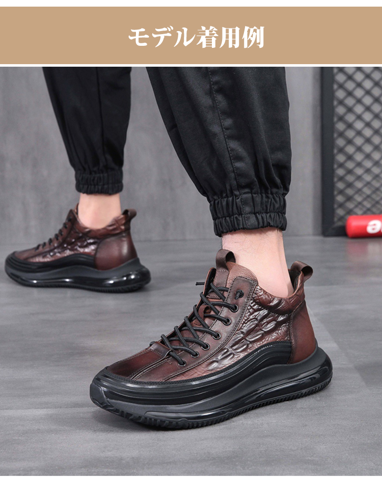 イタリアプチ贅沢ワニ柄 厚底クッションカジュアルメンズシューズ